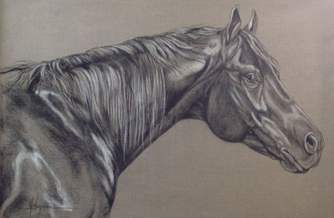 À travers le fusain et le graphite, elle capte le mouvement, la présence et la noblesse d’êtres vivants, sans détour ni couleur, dans leur essence la plus pure.